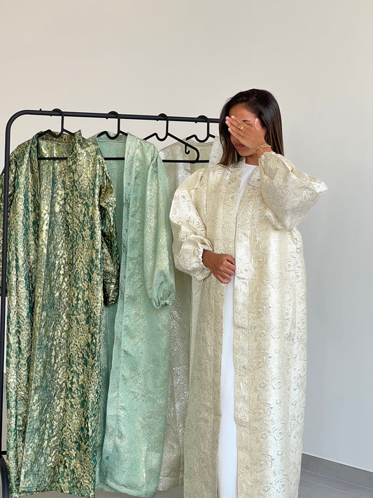 Discover our brocade kimonos, perfect for special occasions. Handmade in Morocco with high-quality brocade fabrics, these kimonos combine elegance and tradition. Their rich patterns and luxurious texture bring a touch of sophistication and refinement to every outfit. Wear them for a unique look that perfectly combines artisanal heritage and modernity.